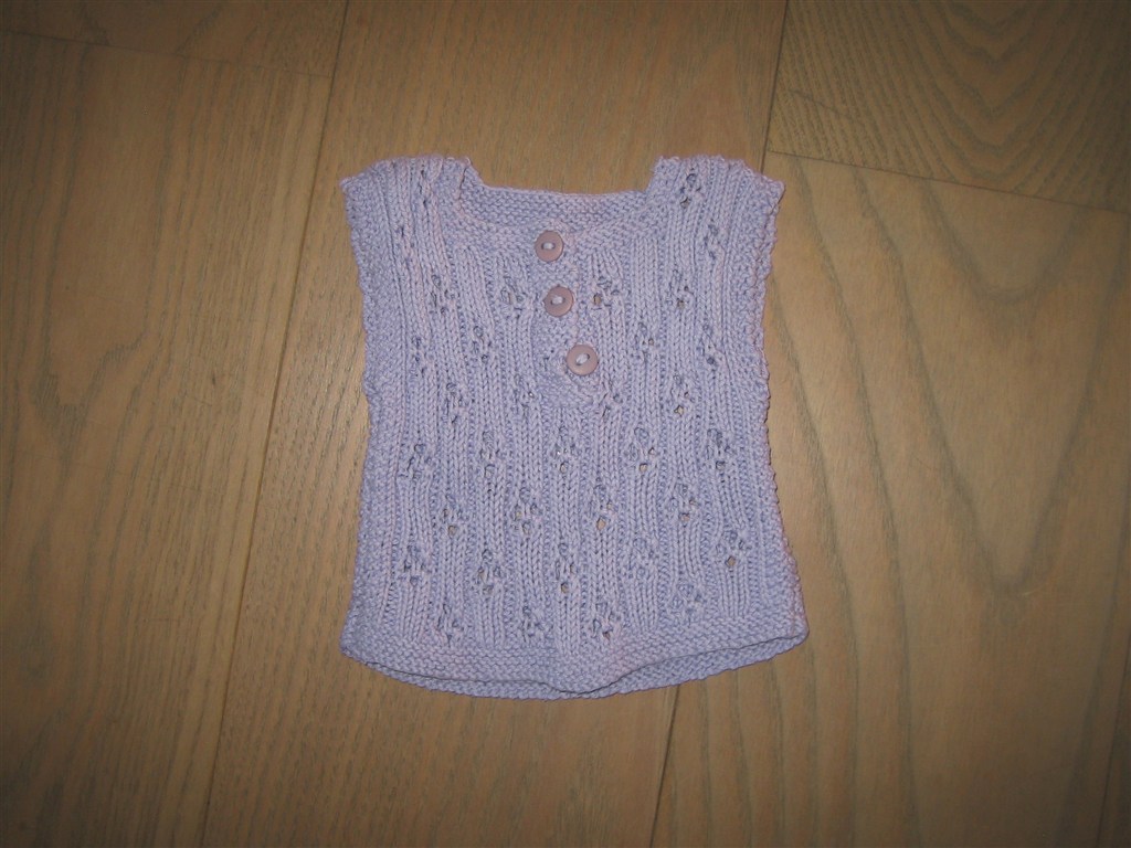 11. Hjemmestrikket/hæklede vest 0-3 md 50 kr.