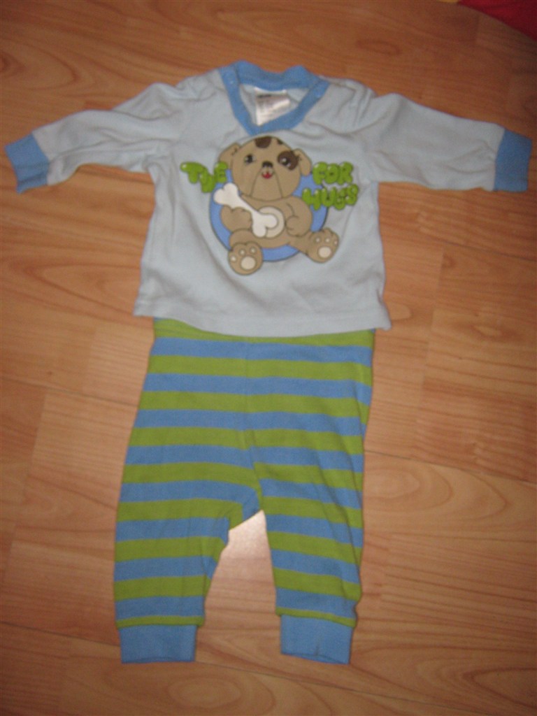 Billede 6. Sæt med tynde bukser og trøje med hund på. 50 kr.