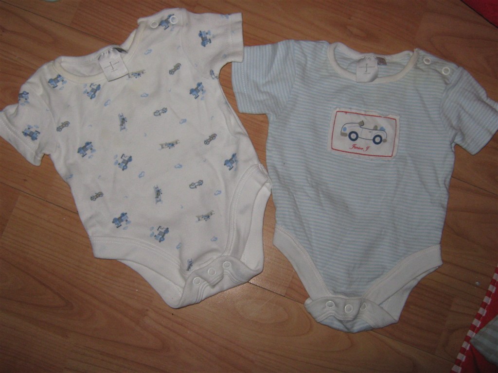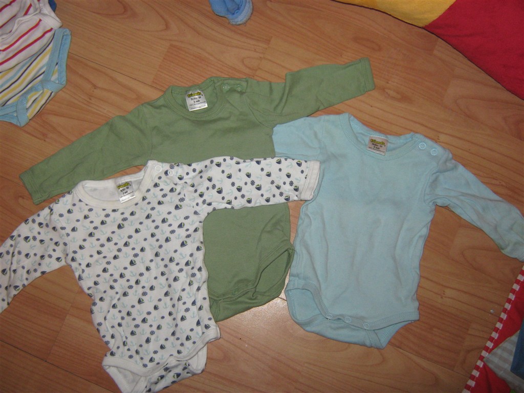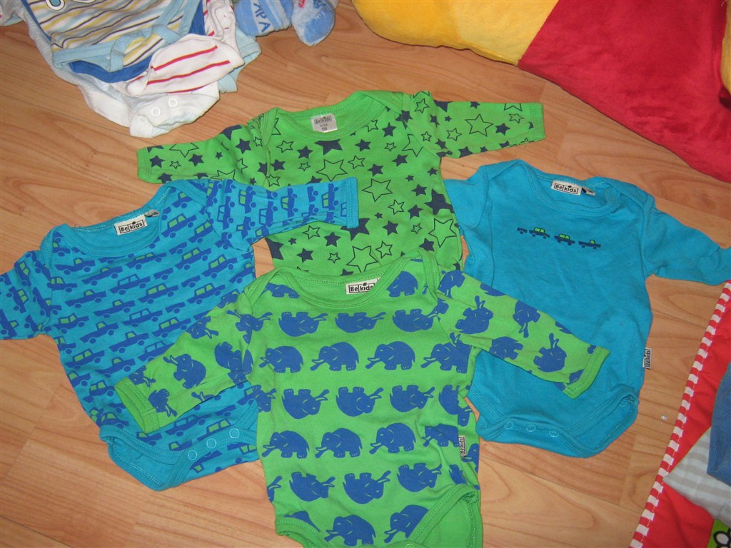 Billede 11. 4 Bodyer, 2 blå og 2 grønne med forskellige motiver. 70 kr.