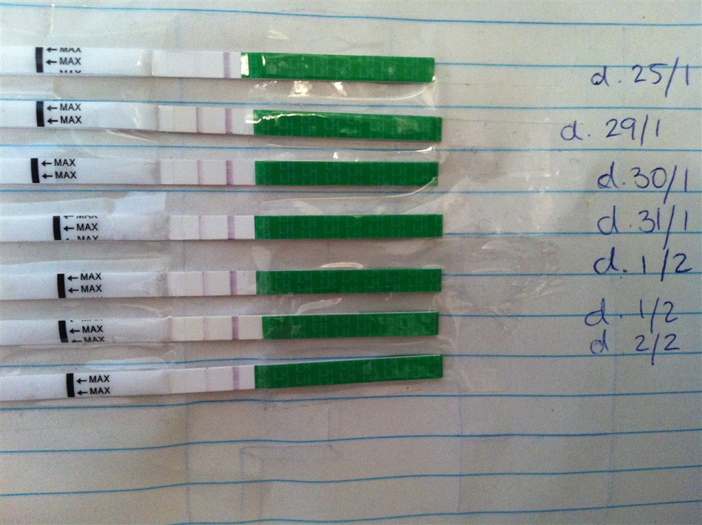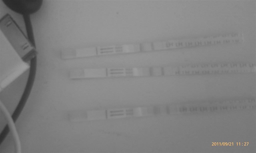 Alle dine test er negative,det er hele test stregen,der skal være lige så tydlig eller tydligere end kontrolstregen,og det er de ikke hos dig.