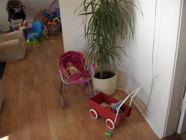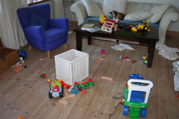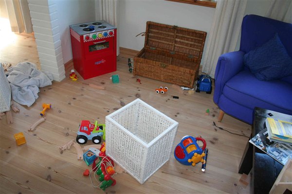 Det er så pinligt hvis der kommer uventet besøg, for selvom der bliver ryddet op i hvert fald hver anden dag, tager det altså ikke mere en 15 minutter for Stella at vælte og sprede samtlige ting ud over det hele.