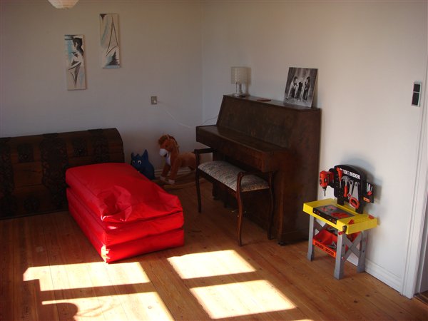 Vi kommer derfor kun ovenpå når vi skal sove eller en sjælden gang imellem for at give vores stakkels lyse møbler en pause for fedt-fingre og tush streger.