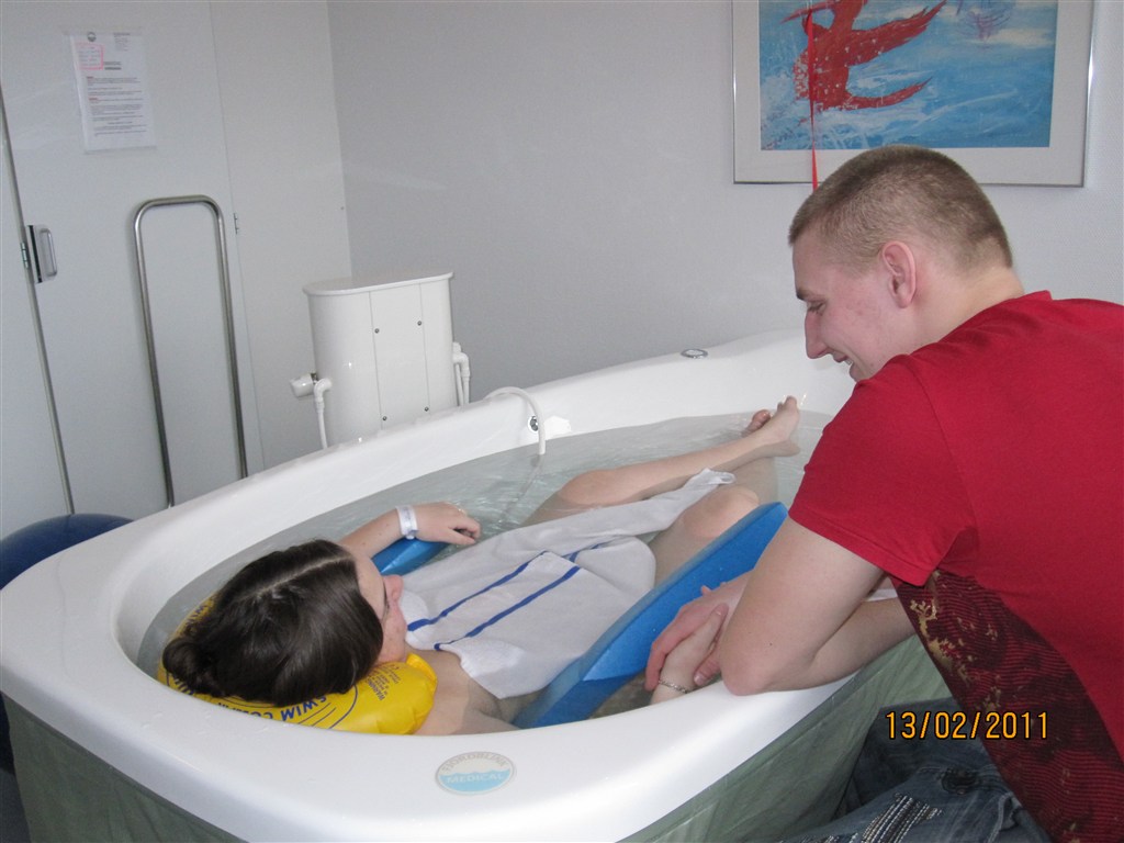 Billed 2: Ligger i fødekaret eneste smertestillende, ikke det smarteste look og ligge der med skumring og nakkestøtte, men faktisk ret behageligt..