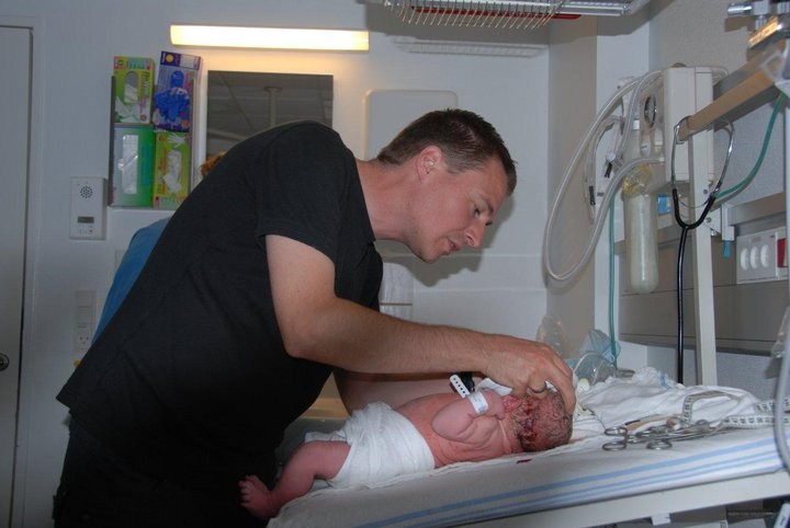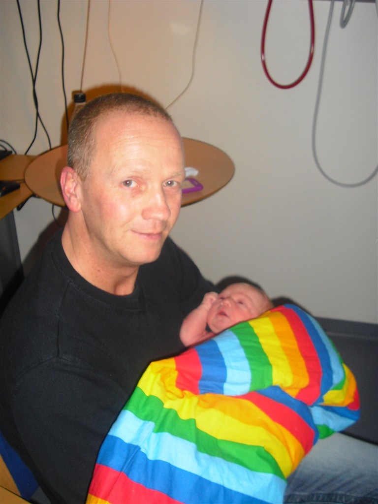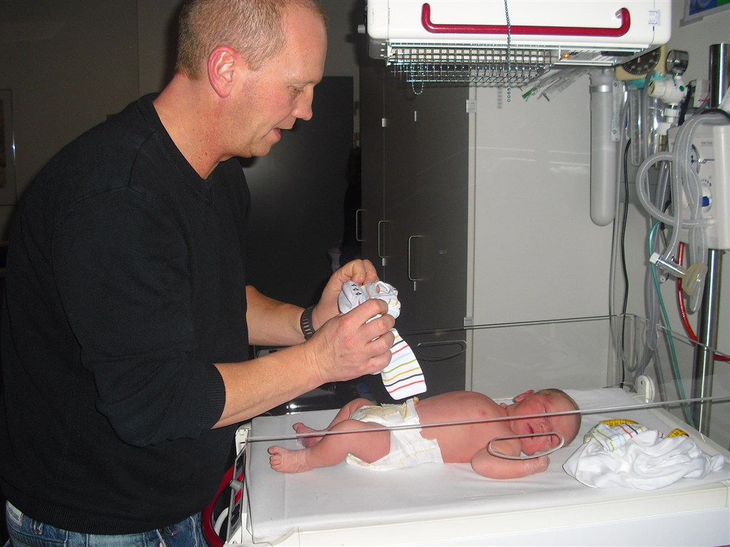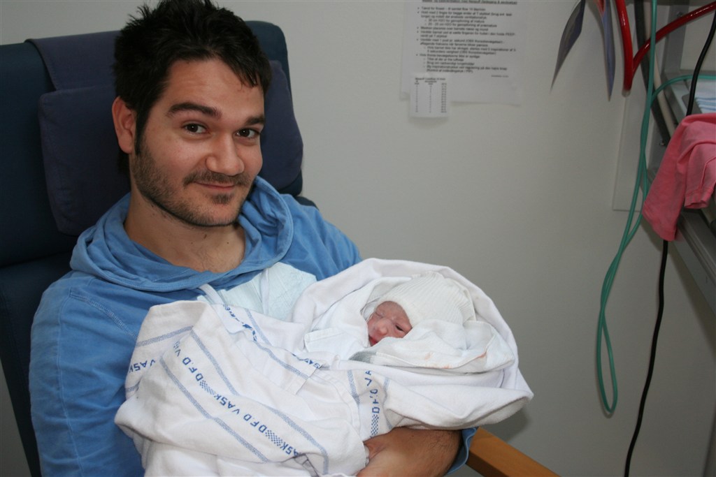 3. matti ser sin far få første gang. en meget stolt far som holder sin søn få første gang <3