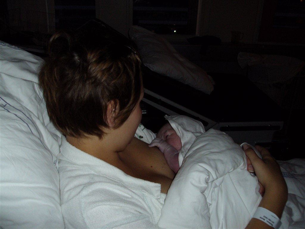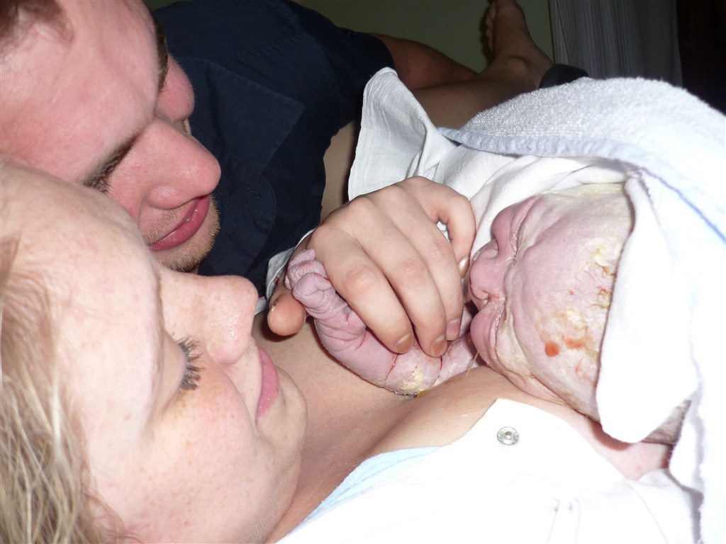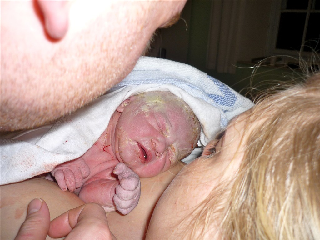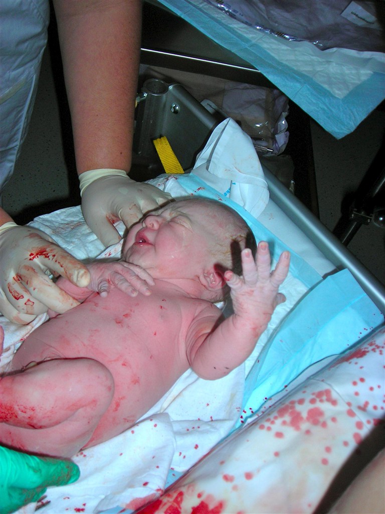 Men min pige Astrid er født som stjernekigger. Og min mor tog flittig billeder under hele fødslen, og fik klikket på knappen i det rigtige sek. da Astrid's hovede kom ud med ansigtet opad.