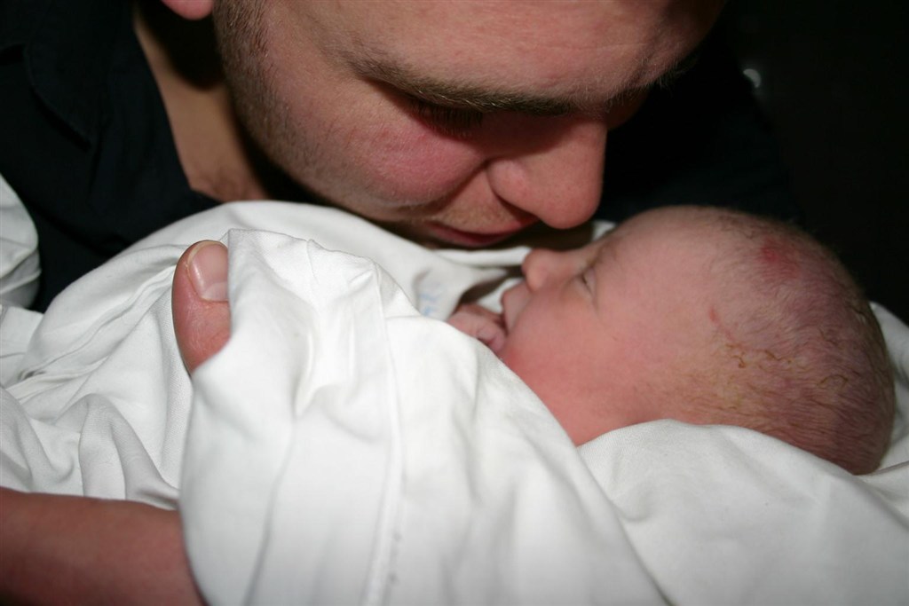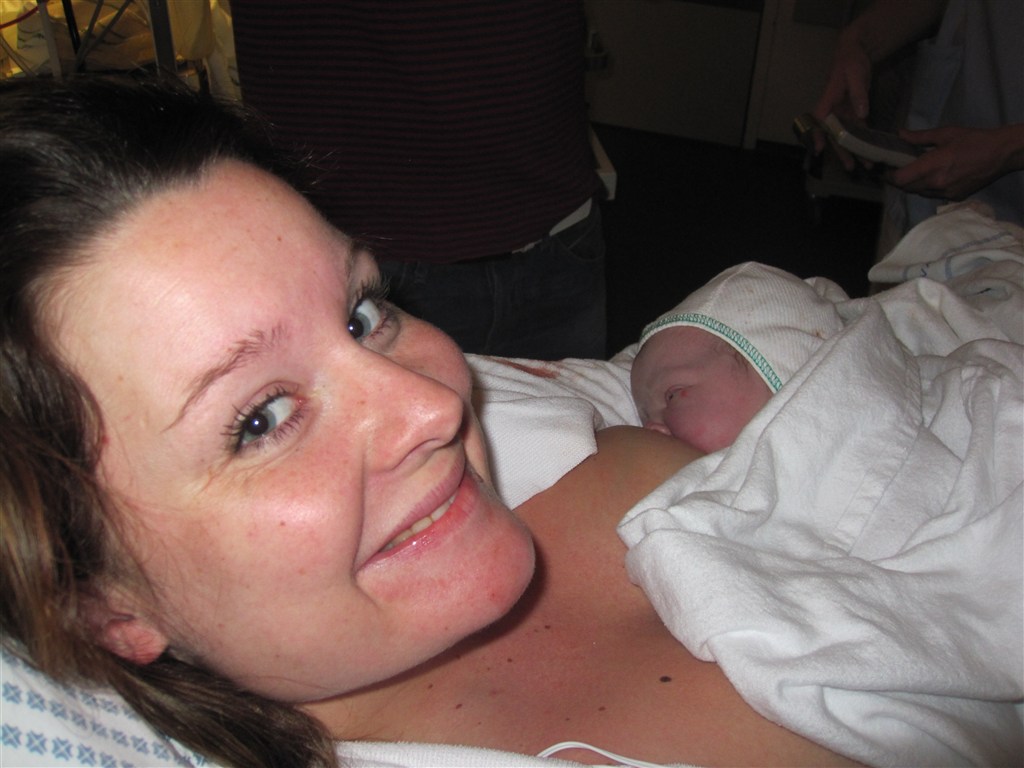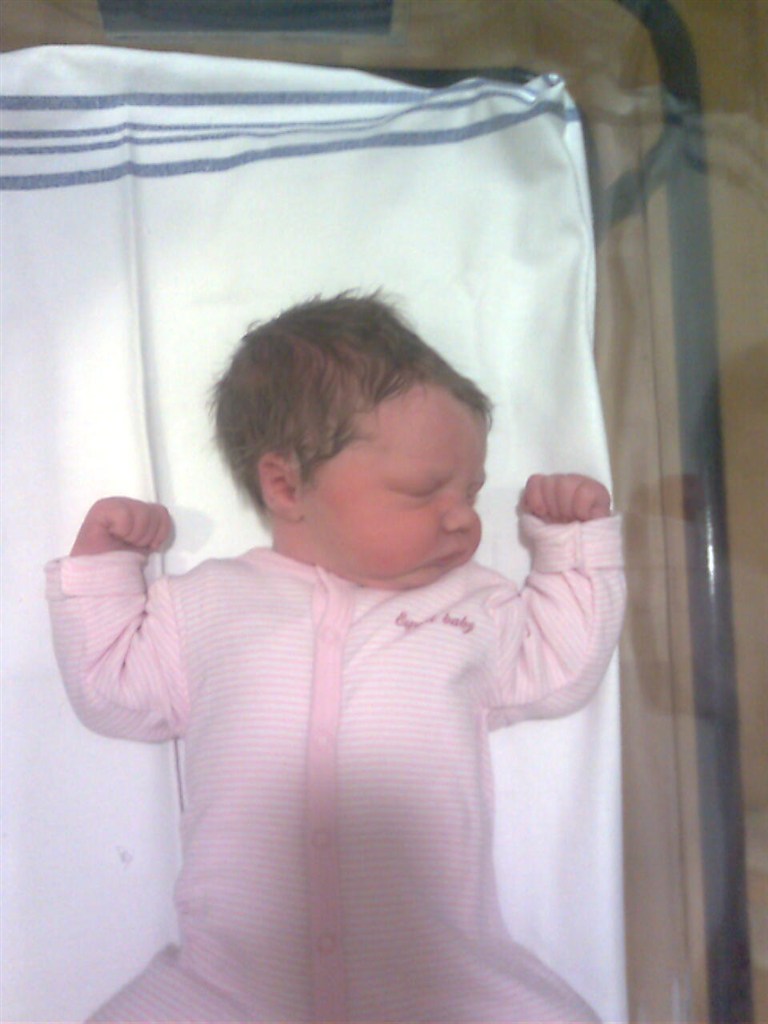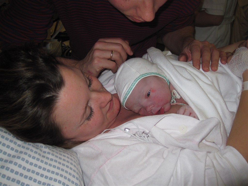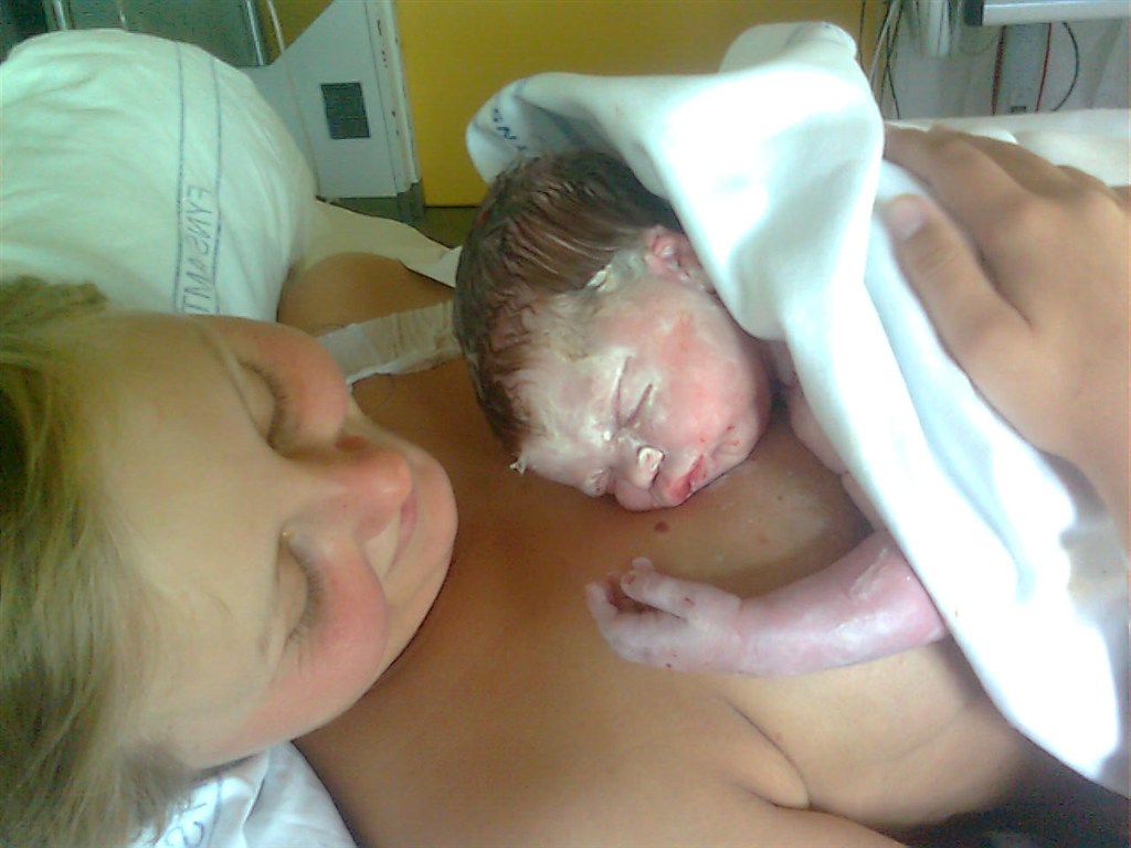 Men min pige Astrid er født som stjernekigger. Og min mor tog flittig billeder under hele fødslen, og fik klikket på knappen i det rigtige sek. da Astrid's hovede kom ud med ansigtet opad.