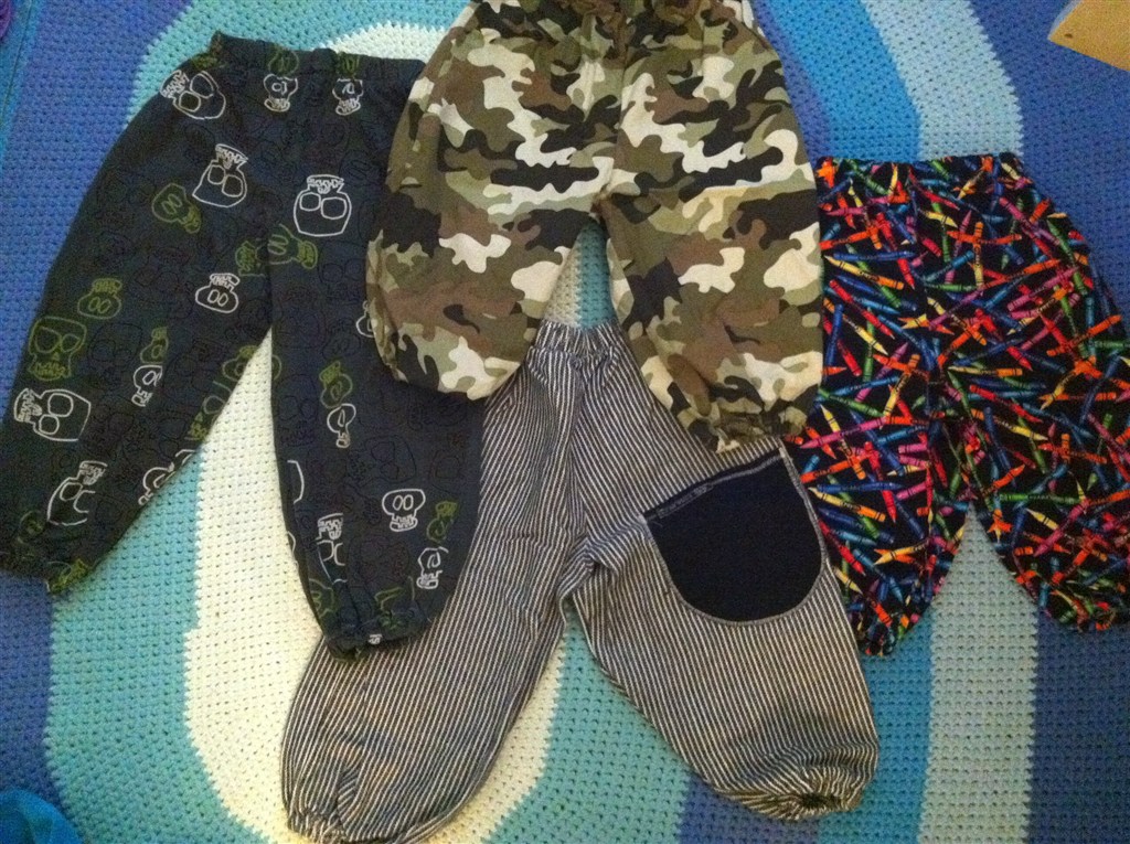 1; Hjemmesyet bukser Str 74: 25 pr par