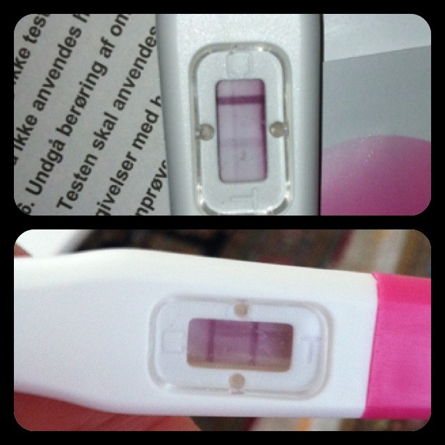 Det første billed er den første graviditetstest jeg tog, og den nederste er den jeg tog for et styk tids siden
