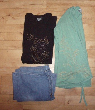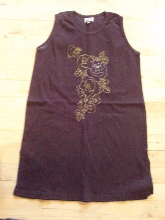 - Ærmeløs tunika fra Abovo, str S. Sort med guld-sølv mønster på maven, i kraftig jersey stof. Har desværre fået hvide skjolder efter deodorant under armene. Ellers er den fin :-)