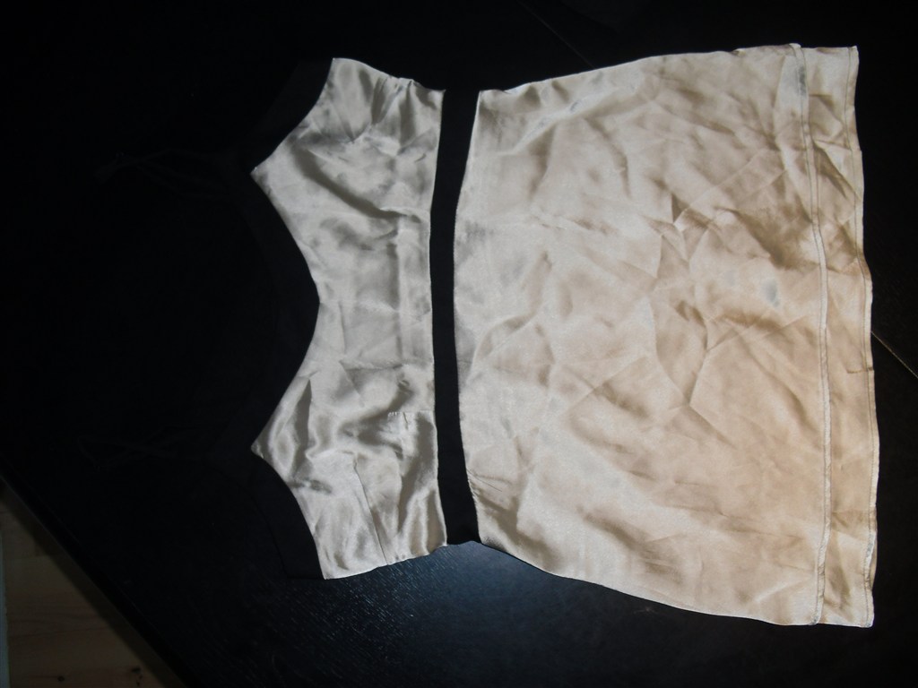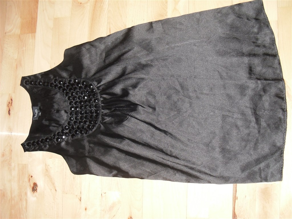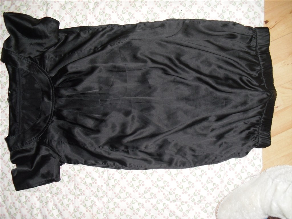 Billed 32 sort satin kjole fra mbym str xs, 100,-