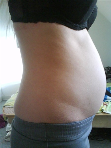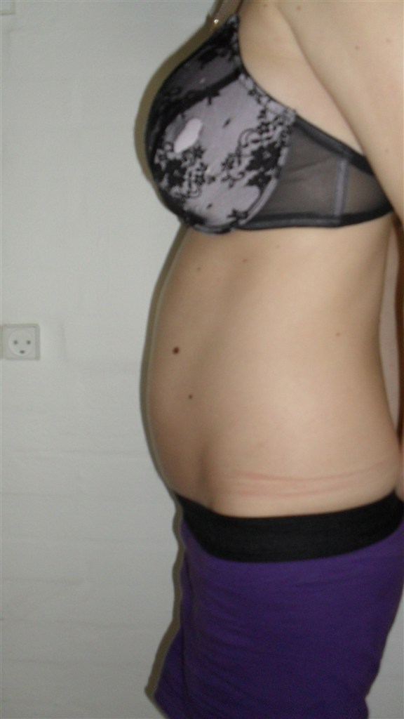 Ingen mave overhovedet, så måske lidt oppustet ud om aftenen men da vi så nåede uge 19 skete der ting og sager, men fik aldrig en stor mave.. Ugen inden jeg sku føde var der en der sagde "Ej det bliver da hvis et af de første børn der bliver født i det nye år hva?" og jeg var så sat til den 24/09 så hun var ret overrasket da jeg fortalte at der var en uge til