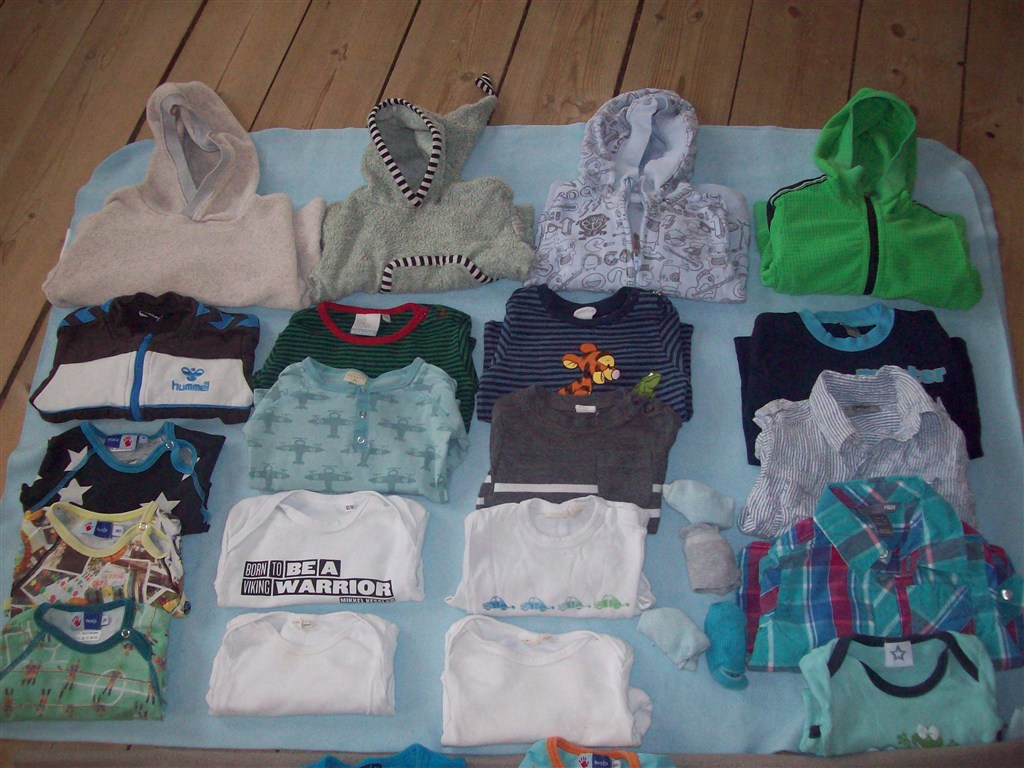 I alt er der 37 stk. tøj i str. 80-86 , Tror en af t-shirtesne er str. 92 ..