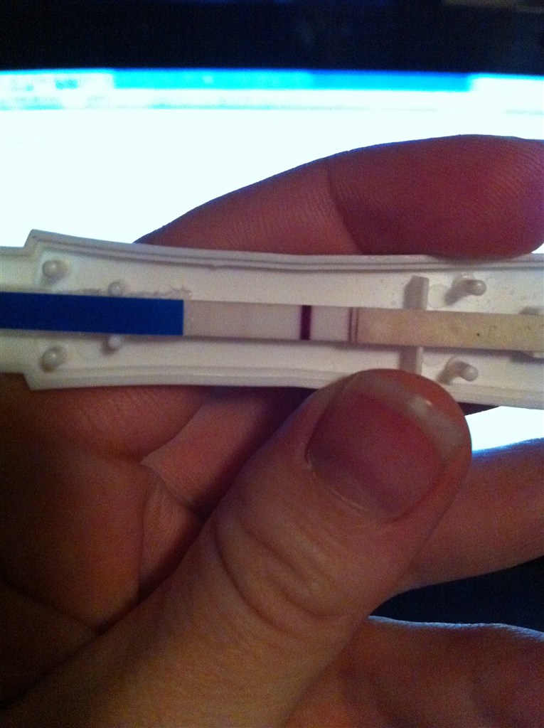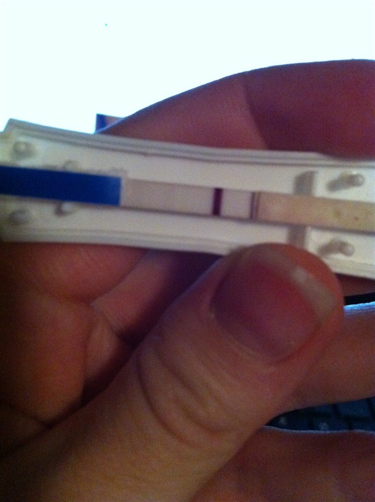 Anonym skriver: Uh jamen stoler enlig ikke På den, den var i mega lang tid helt lyserød over hele test feltet med kontrol streg, da farven lige skulle fordeles først. Men kunne fornemme en svaag streg. Efter meget lang tid var den alm hvid i baggrunden og den teststreg var nemmere at se nu med hvid baggrund. Er virkelig i tvivl :/ Hmm Men tak, det kunne da være fedt hvis der var Noget, og det her bare er det tidlige stadie