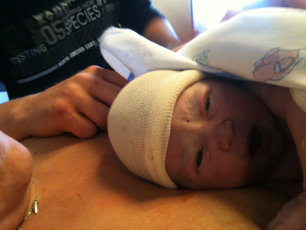 Billede 1 er hun lige kommet op på brystet..