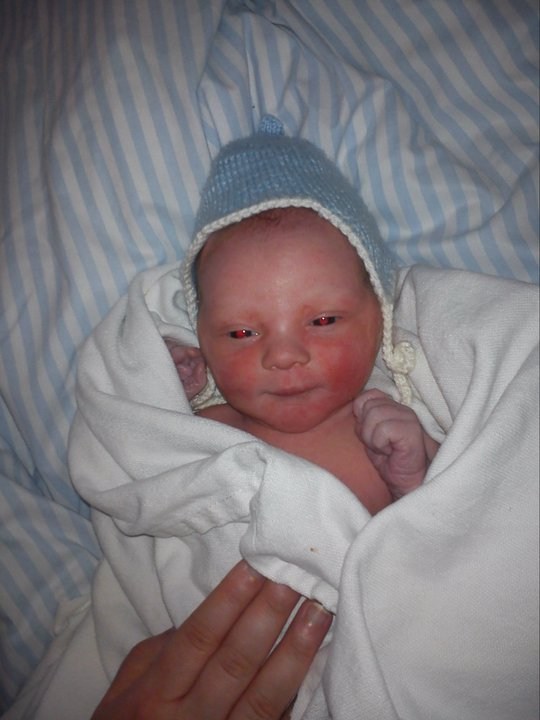 men så kom smerterne væltende igen og jeg kunne ikke engang sige noget... Og de skruede op og op for blokaden, men hjalp intet... Og klokken 16.20 fik jeg pressetrang og 16.43 fødte jeg min dejlige søn Emil på 54 cm og 3660 g