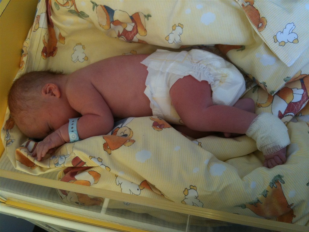 Men der 8 dage over, var der pludselige ingenting at mærke og kunne næsten ikke mærke liv. Så ved 18-tiden om aftenen kom jeg ind på FG og fik kørt strimmel og der var det hele perfekt - de kunne endda også måle nogle veer, jeg så bare ikke kunne mærke. Blev skannet, hvor lægen mente, der var meget lidt fostervand, så de satte mig i gang. Kl. 19.25 fik jeg en kvart cytotec og blev sendt hjem og sove. Klokken 3 vågnede jeg og begyndte at have veer, dog med lidt lang tid i mellem. Klokken 8.30 kom vi ind på FG igen, for at få taget vandet... OG SÅ SKAL JEG DA ELLERS LIGE LOVE FOR AT JEG FANDT UD AF HVAD VEER ER! Jeg havde ikke en eneste pause mellem veerne, der begyndte at komme ved 10-tiden, men havde en ide om så naturligt smertestillende som muligt, så valgte akupunktur. Efter en halv time, sagde jeg bare epidural og da den blev lagt, så kunne jeg pludselig snakke og spise og få en lur
