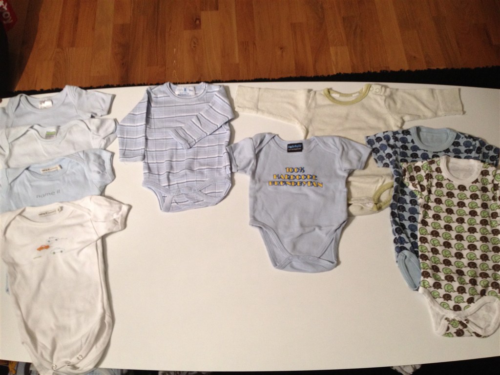 - Bodyer til venstre. 4 kortærmede og 1 langærmet str 62