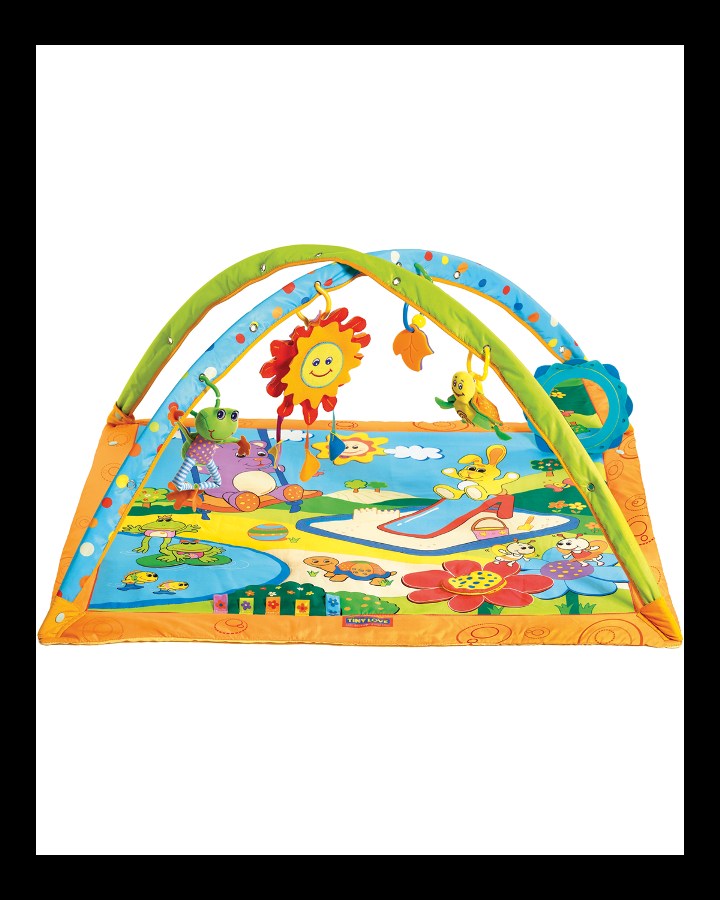 Solen kan spille 3 forskellige melodier, frøen kan "vibrere" og skildpaden rasler. Der er også nogle "bide-blade" og et spejl. På selve tæppet er der en sol med pivelyd i og der er flere områder med "crinkle-effekt"