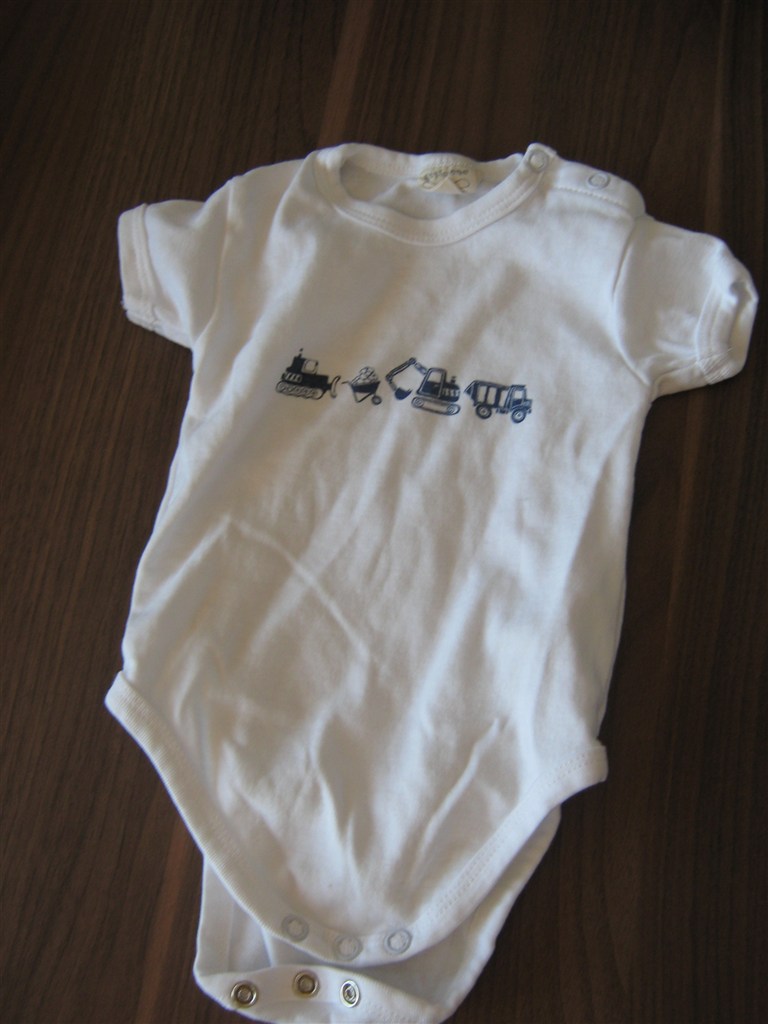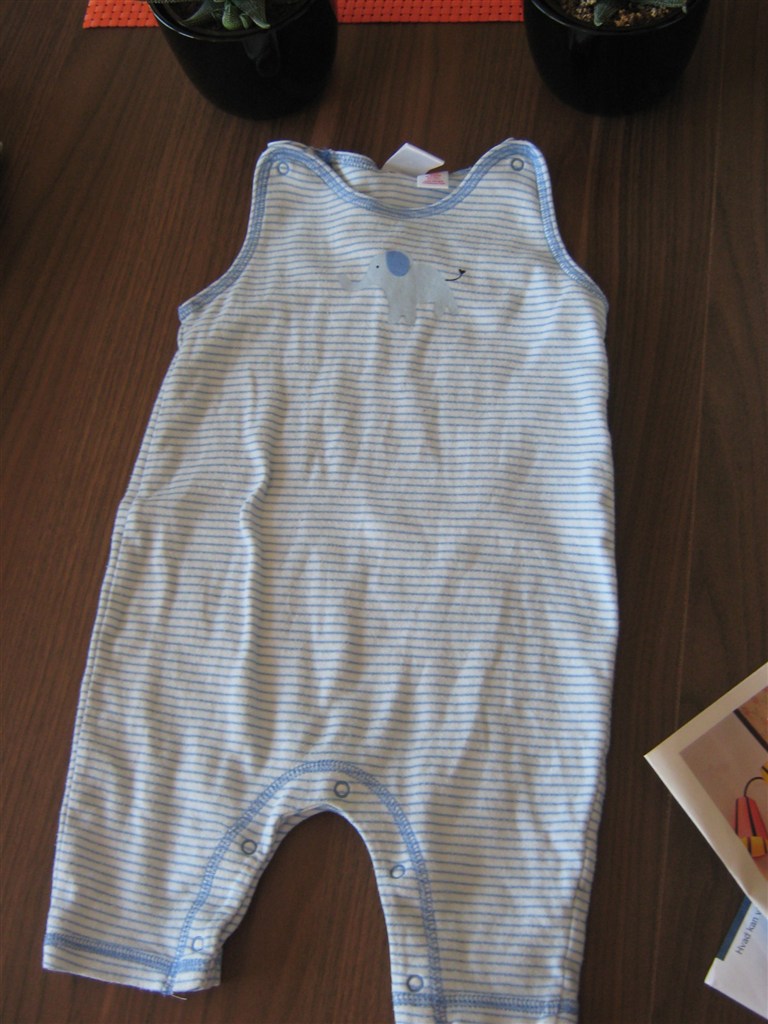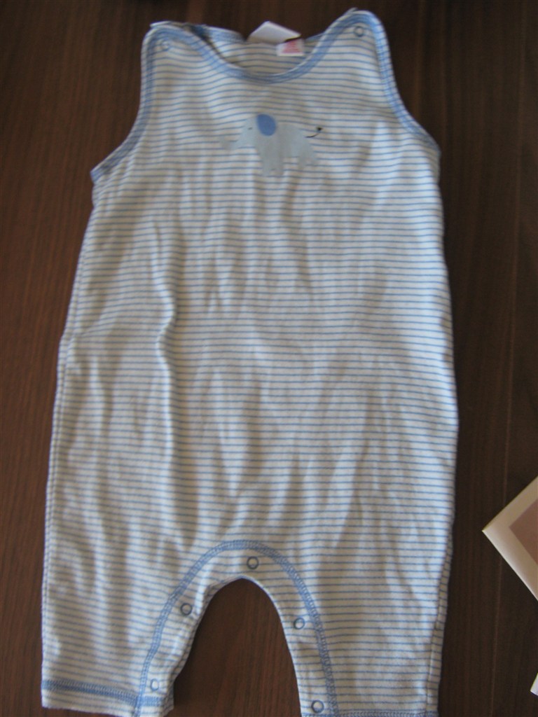 Billed 2/3 Stribet dragt med elefant på. 15 kr.