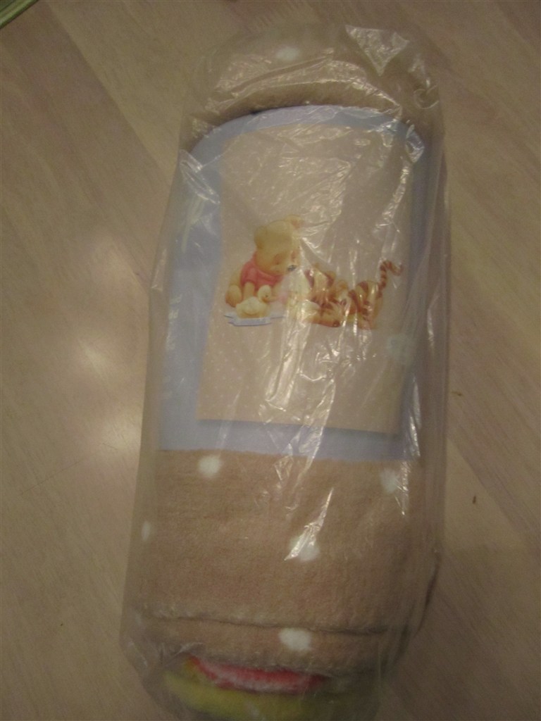 Billede 8: Fleece tæppe med baby tigerdyr og peterplys. 90 gange 120 . aldrig brugt.