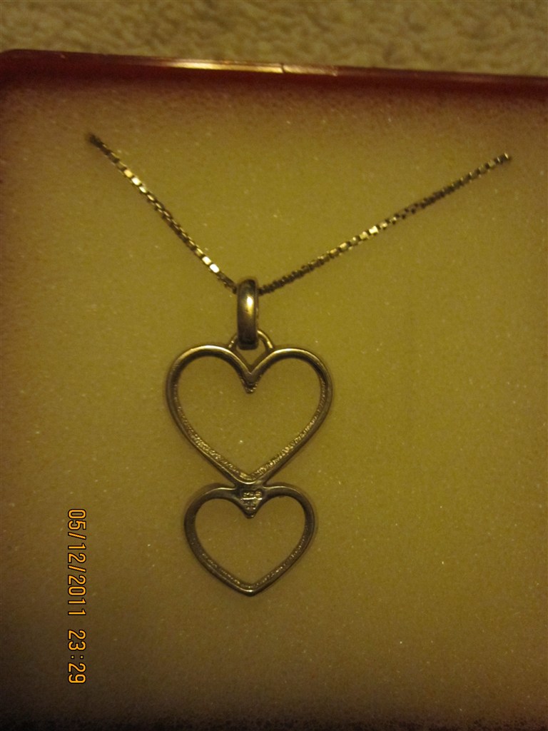 Sød sølv halskæde bestående af 2 hjerter, i sød rød æske.. sælges for 150 kr