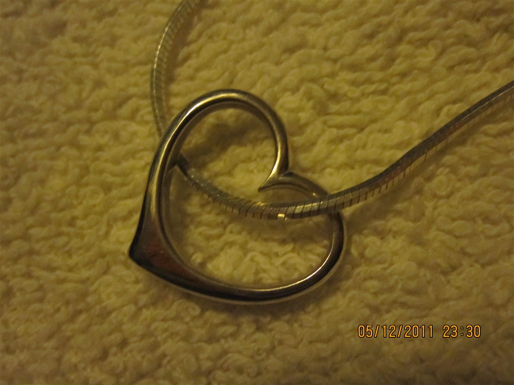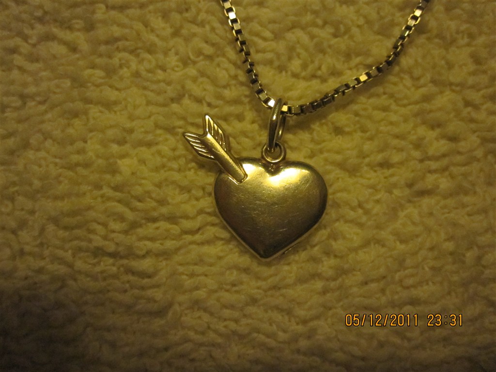 Sød lille sølv halskæde af hjerte med en halv pil igennem, nogle år gammel men ikke særlig brugt, sælges for 100 kr
