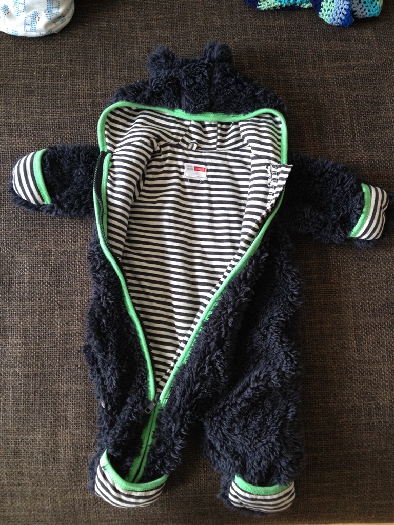 det eneste OBS er at i heldragten med de grå striber og grøn elefant, er der lidt bøvl med den sidste knap nede ved foden.