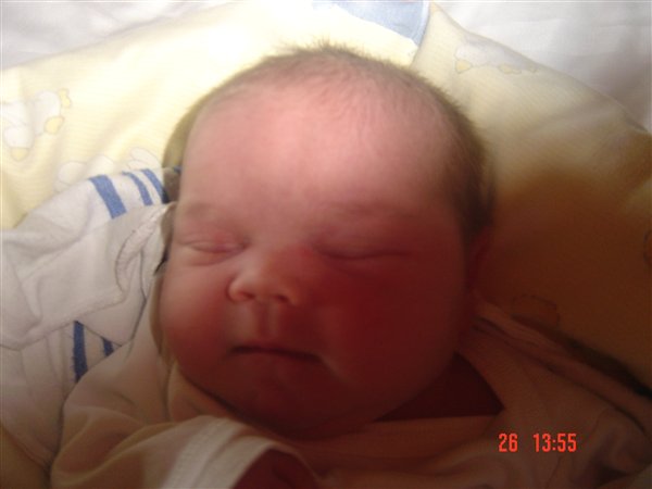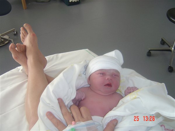 Jeg var kun 4 cm åben da vi kom ind, men det var jo nok til at vi fik lov at blive. så gik jeg ellers der, og jeg havde da veer men det gjorde ikke sådan ondt, de fleste veer kunne jeg godt snakke imens jeg havde, og vi havde det rigtig hyggelige, en dejlig gæv jordemoder,( ikke Morten selvom han var på vagt), og en jordemoderstuderende som synes at jeg var et spændende projekt.