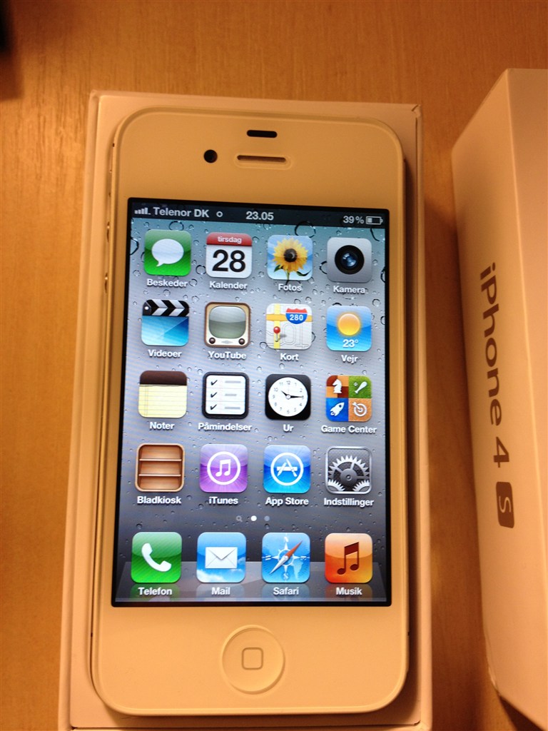 Min kæreste har denne hvide iphone 4s, 64 gb til salg.. Den har kun været brugt 7 minutter og er helt som ny. Den har ingen ridser og alt medfølger som fra nyt af.