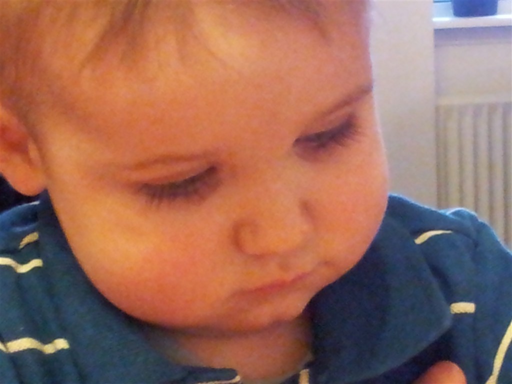 Han havde mellemørebetændelse i januar, fik penicillin og blev vores store glade dreng igen!