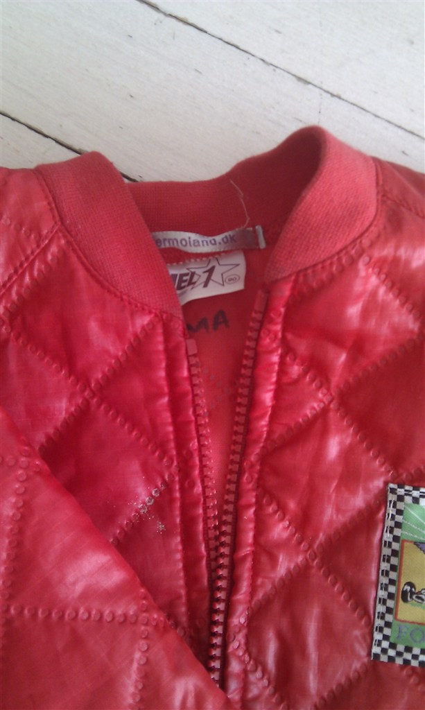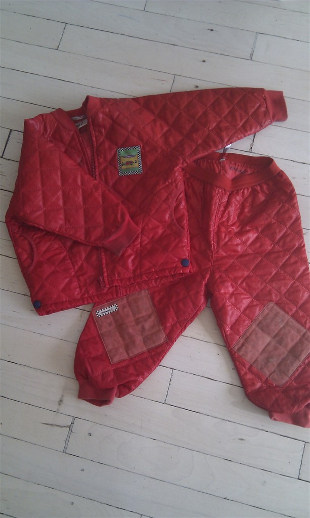 Rødt termosæt fra Termoland, str. 90 sælges. Man kan godt se det er blevet brugt, knæene har forstærkning af ruskind (det er lidt plettet). sættet fejler ingenting, der er ingen huller, men der er skrevet navn i begge dele. Byd.
