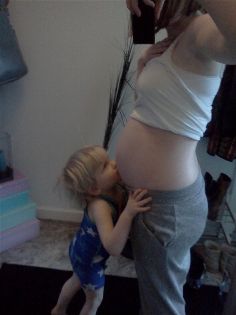 Min niece på 4 er begynt at hive min bluse op for at kysse fætter-baby hej når hun ser mig, det er altså bare så dejligt.