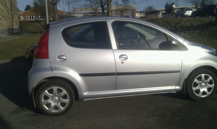 Jeg sælger min elskede bil, min peugeot 107 i sølvgrå.