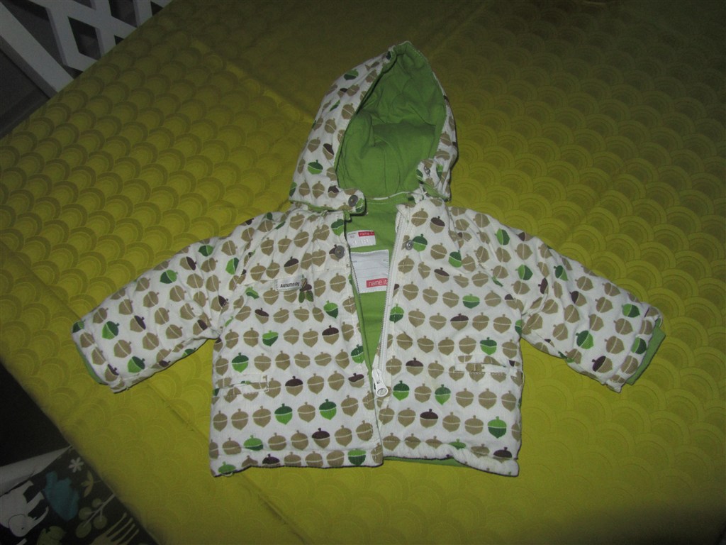 Billede 1: Lækker jakke i str. 62. Hvid i bunden med agern på. Brune og lidt grønne. Rigtig godsom overgangsjakke. Nypris 199,- God men brugt 50 kr