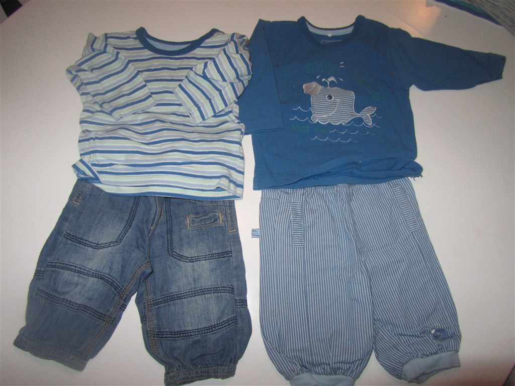 Billede 4: Næsten nye sæt str 62 fra forårssæson 2011. Cowboybukser og stribet tshirt, Lyseblå stribede bukser og blå bluse med samme striber i tryk. Nypris pr sæt 230 kr. Sælges for 100 kr pr sæt.