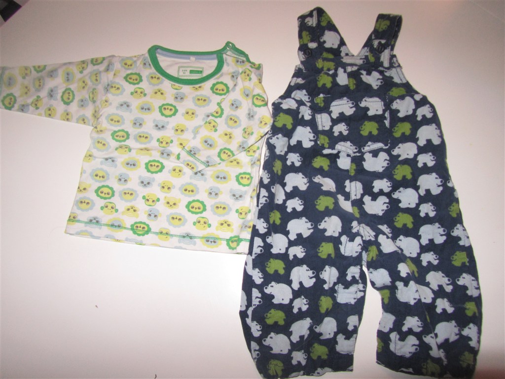 Billede 5: Bluse med dyr og mørkeblå bukser overalls med dyr. Godt men brugt. Bluse sælges for 30 kr 20 kr og bukser for 60 kr 40 kr.
