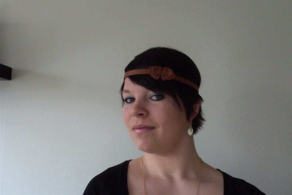 Hvad med at blomsten kommer i den anden side, lige hvor din sideskilning er. Og så ville jeg gøre sådan så hårbåndet "sad inde under håret" Altså lidt hår udover, undertaget foran, hvor man godt må se den