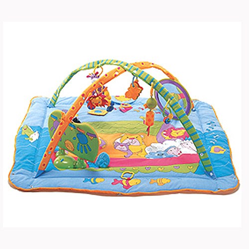Musik ville jeg ikke invistere i. Når den tid kommer, er der meget legetøj der kan spille en melodi, og der gider baby sikkert ikke legetæppet mere
