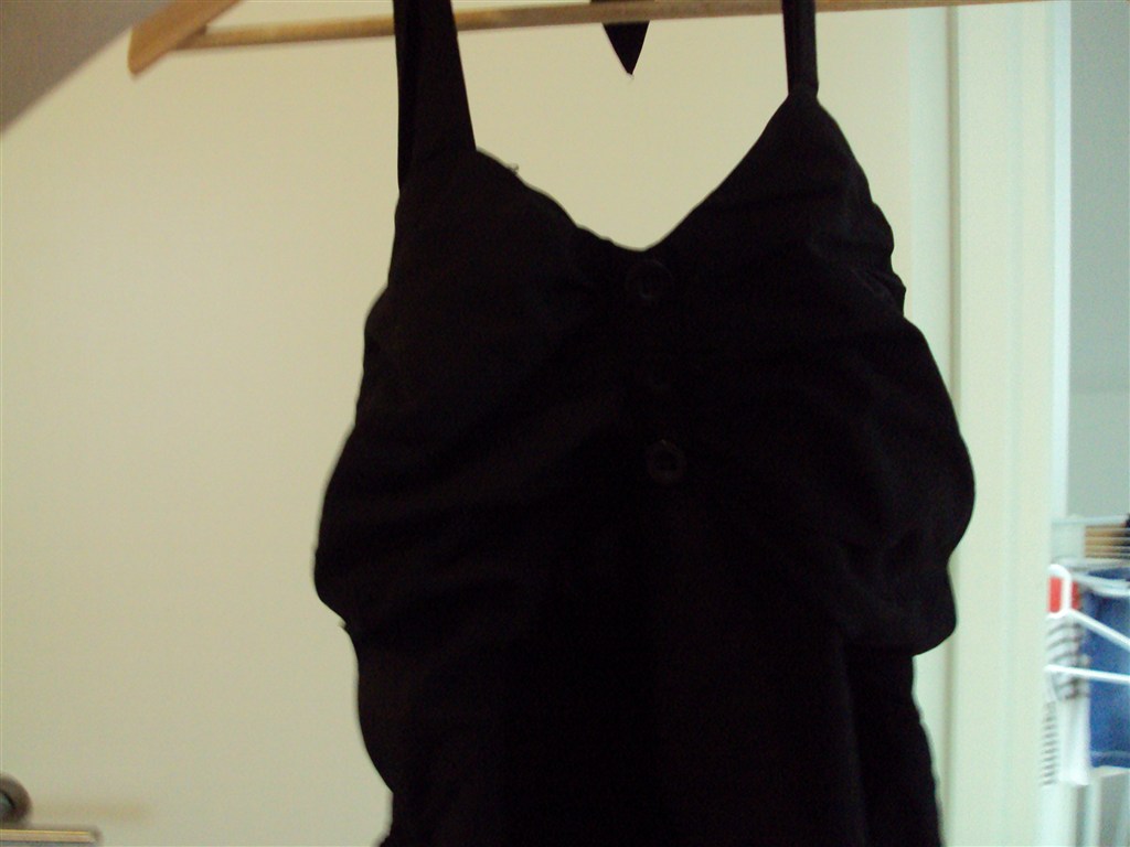 DortheSimonsen skriver: Hvad er str. og pris på den sorte "kjole" med lidt bar ryg?