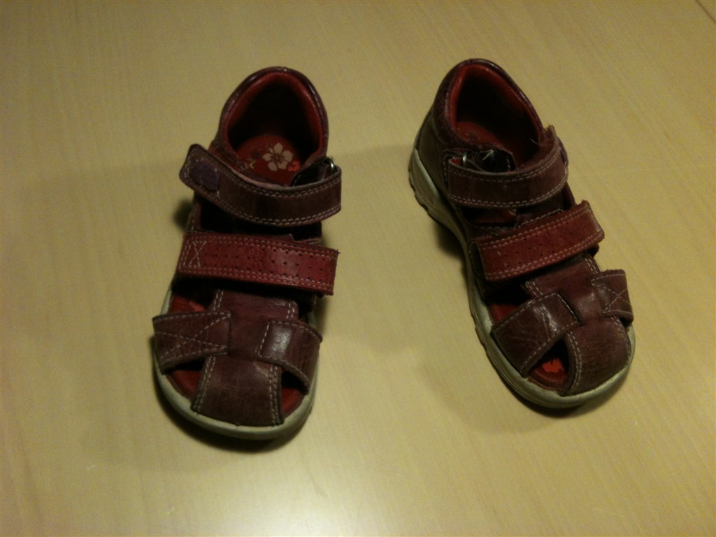 Super søde og praktiske pigesandaler i str. 23 - indvendig skolængde er ca. 14,5 cm. De er brugt fra maj-okt. og er imprægneret flere gange, hvilket har holdt sand, vand osv. væk. De leveres nyimprægneret. Sandalerne er i rigtig fin stand.