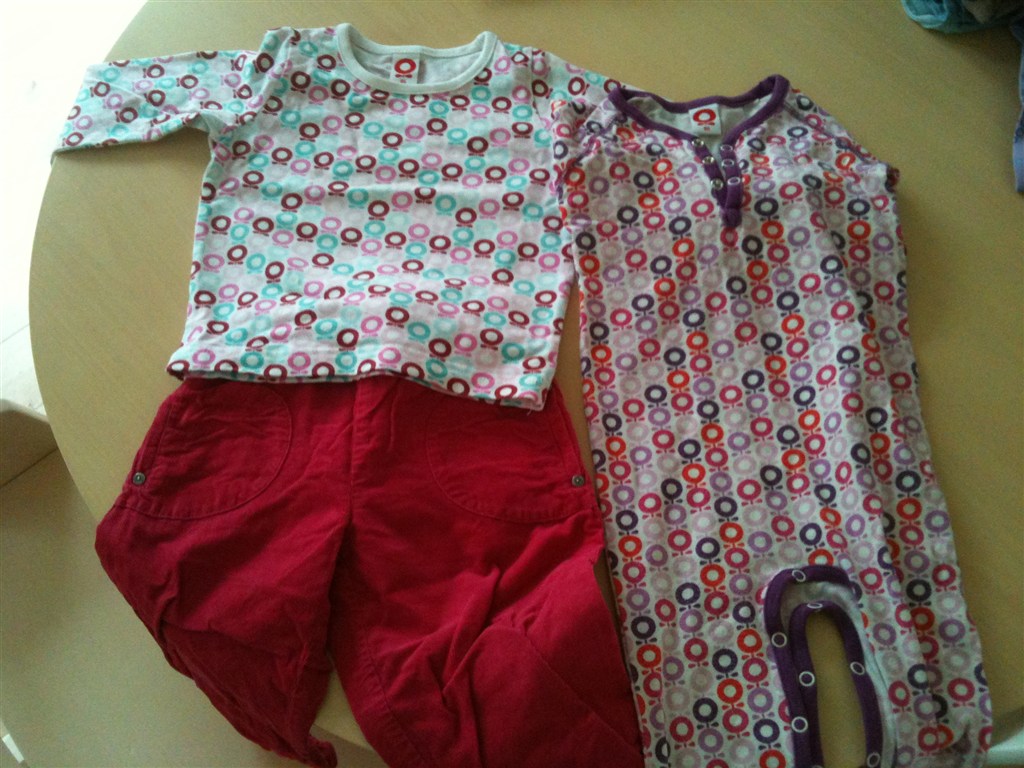 Katvig bluse, bukser og natdragt med det smarte miniæbleprint i str. 86. (Natdragt dog i 80, men min datter har kunne passe den sammen med det andet sæt)