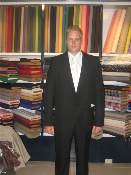 Christians er blevet skræddersyet til ham - hvilket vi kun betalte 11000 Bath for hvilket svarer til 2600 kr. Noah er købt i en tøjbutik til 890 Bath, det er 120 Kr.
