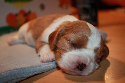 bare lidt glæde herfra og et billede af vores lille vuf, på billedet 17 dage gammel og 737 gram.