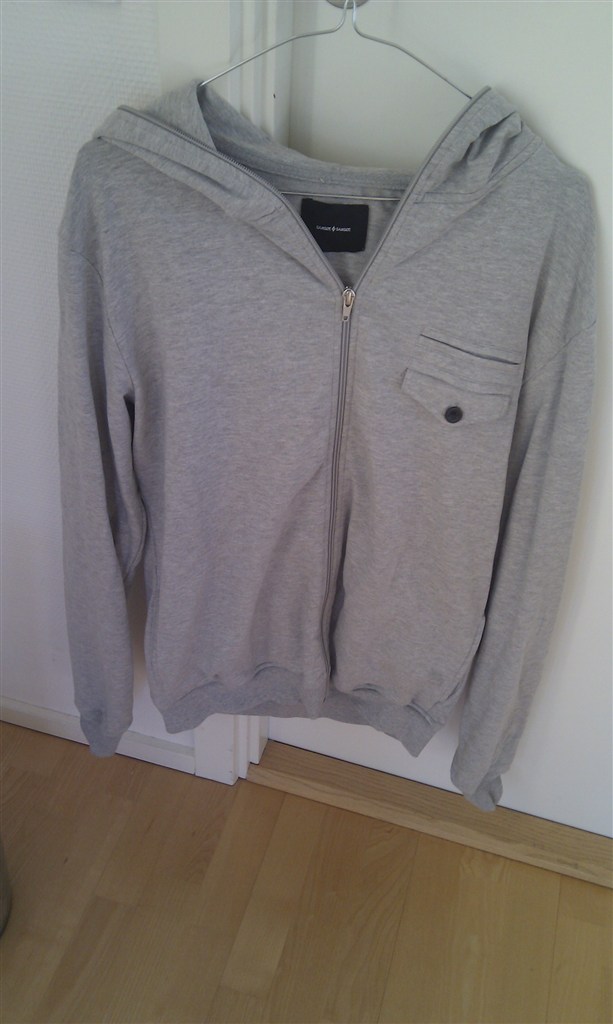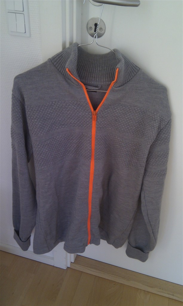 Grå cardigan med orange lynlås Mads Nørgaard str. L 700,- (står til 1100 i butikkerne lige nu). Den har været brugt 2 gange i kort tid.