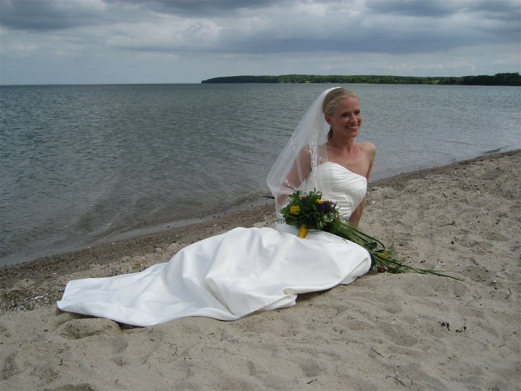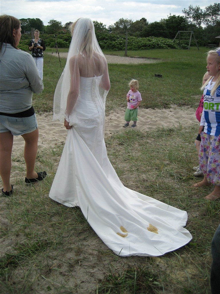 Jeg sælger min brudekjole jeg bar ved vores bryllup i 2011. Jeg havde den på 1.5 time indtil jeg skiftede om til hvad jeg kom i, så jeg kunne være med til rundbold med gæsterne og være mor for min søn