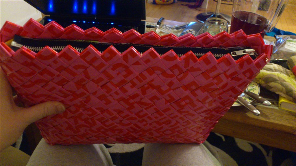 Jeg har lavet en candy wrap taske (flettet taske) Så kunne jeg få en der var flot, og jeg vil bruge bagefter og så kunne jeg jo selv bestemme hvor stor den skulle være
