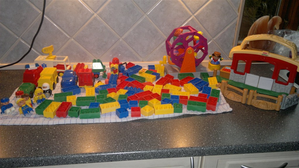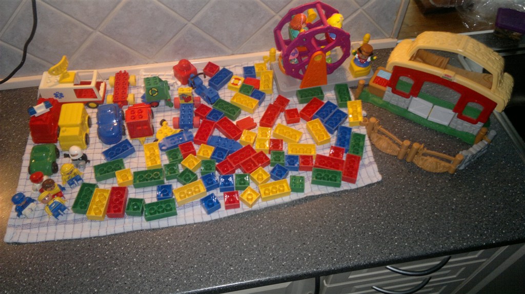 en masse stor klodser mænd og biler og båndgård+pariserhjul osv osv. For alt sammen 250 kr(det er min svigermor der sælger det men jeg har det her hjemme).