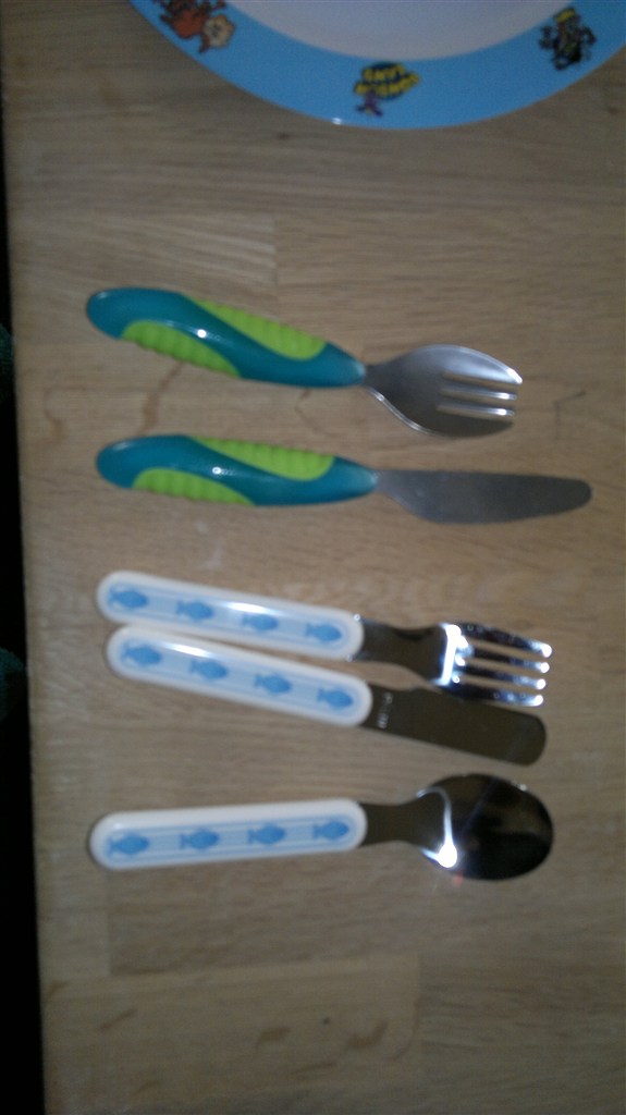 Spisesæt dog er der ingen ske til det grønne/blå sæt. Aldrig brugt.