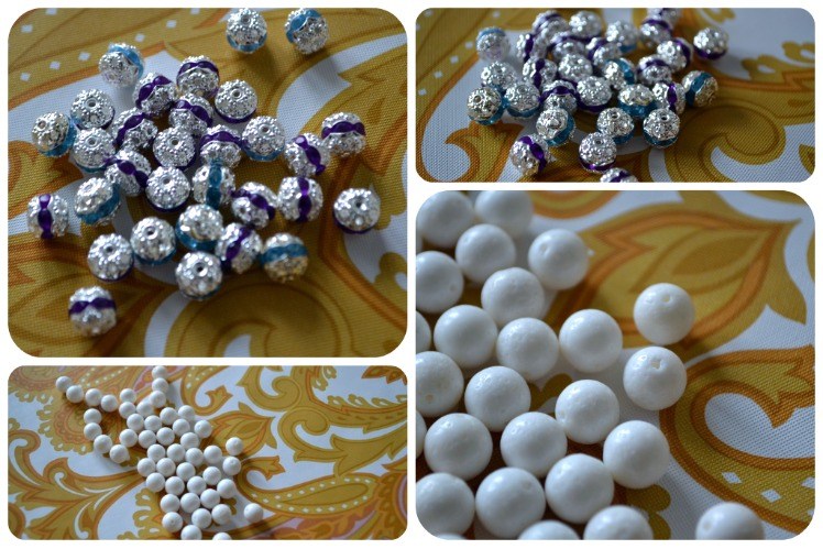 Perlerne med de lilla og blå striber, samt de 6 guld og 6 sølv perler med sten er solgt.