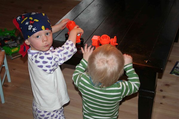 Godt nok kalder han det sø-røver-tørklæde, men ikke desto mindre vil han hele tiden have det på istedet for hue, bla..............
